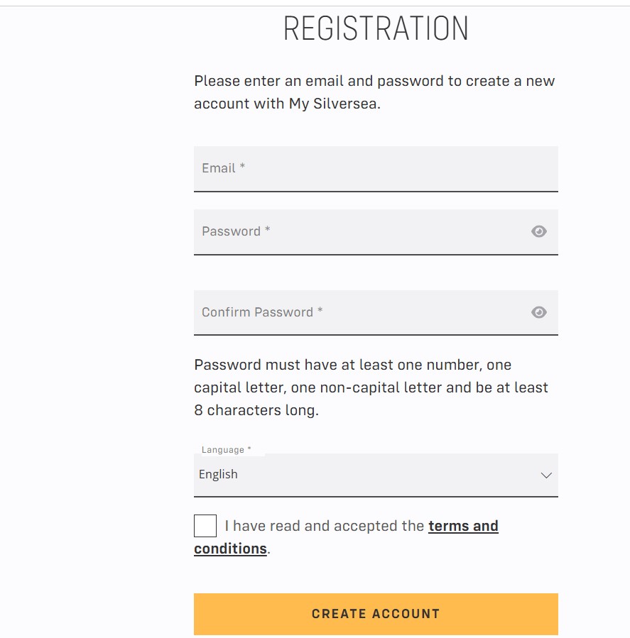- Visit the My Silversea registration page.