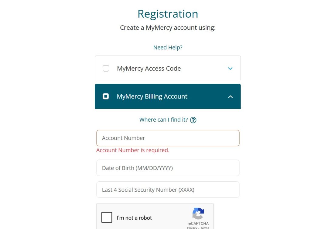 - Go to www.MyMercy.net and click ‘Create Account’.